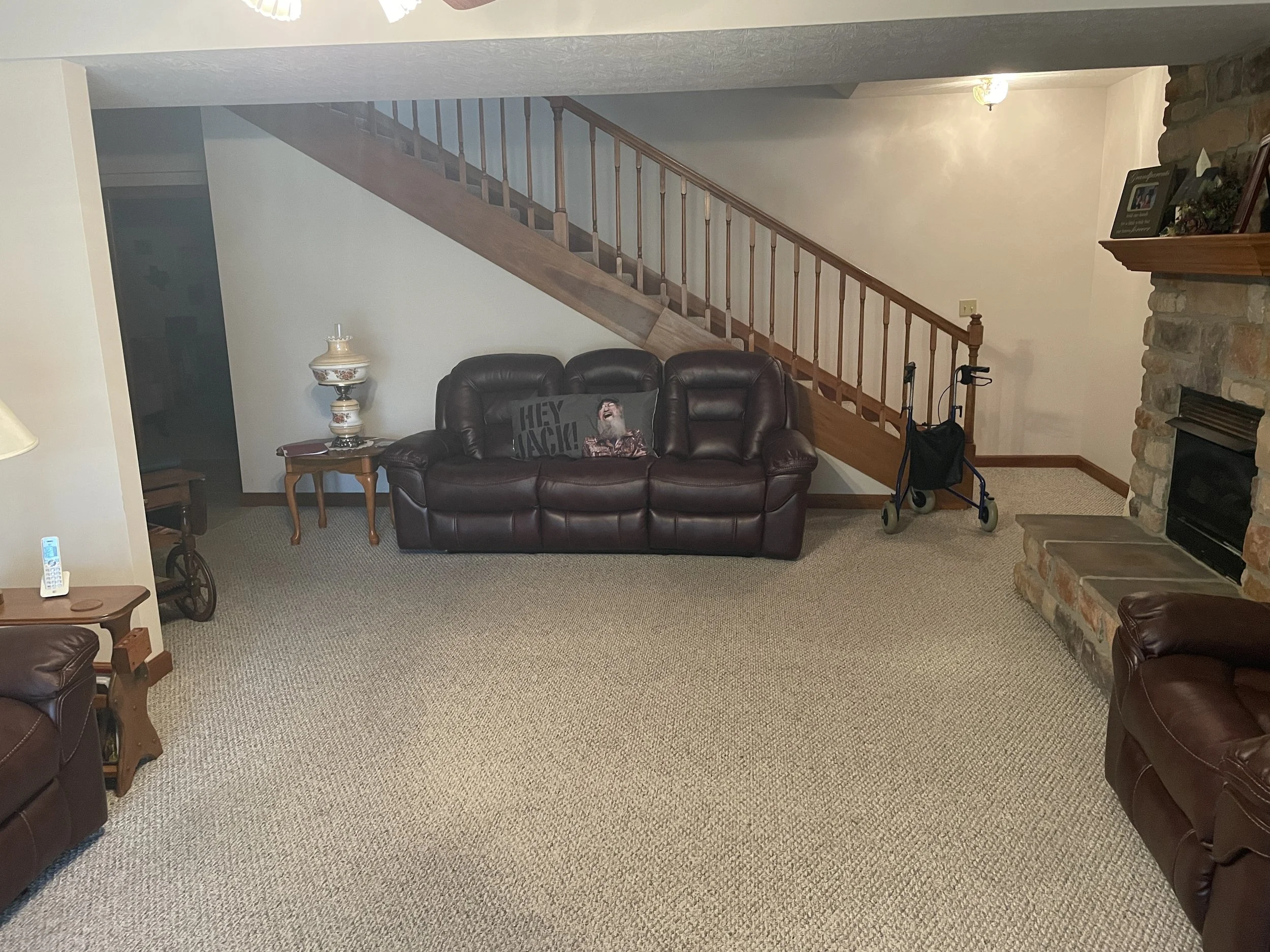 Lower Level (Full basement): Family room w/gas Fireplace (walkout to patio), Office (3rd bedroom?), Bath, Storage (walkout)