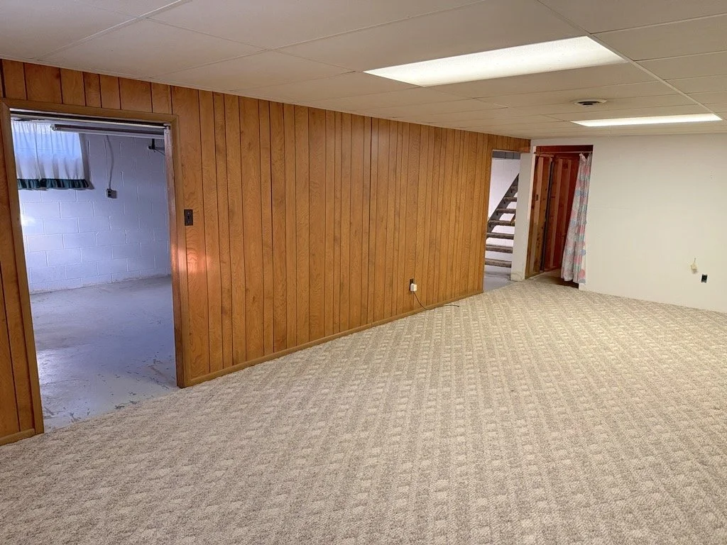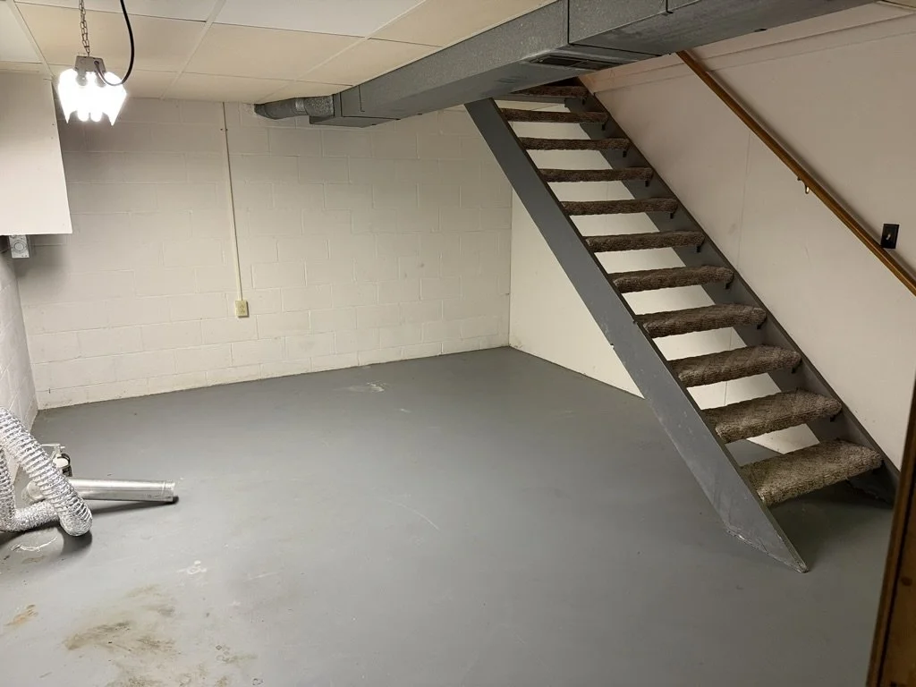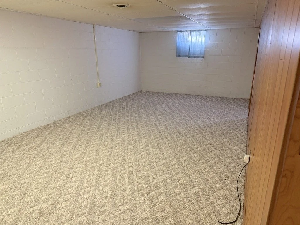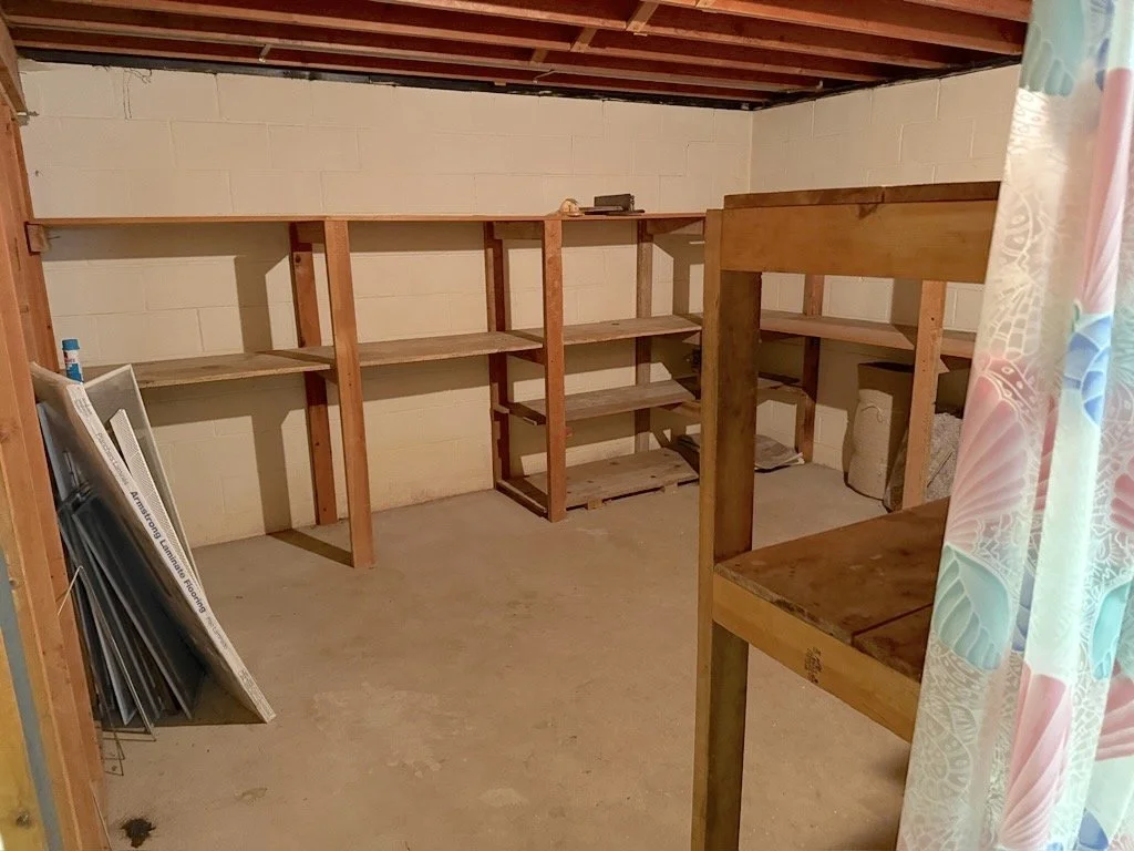 Full Basement : Large Family Room, furnace room, utility/laundry room & storage room with shelves